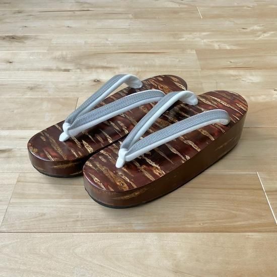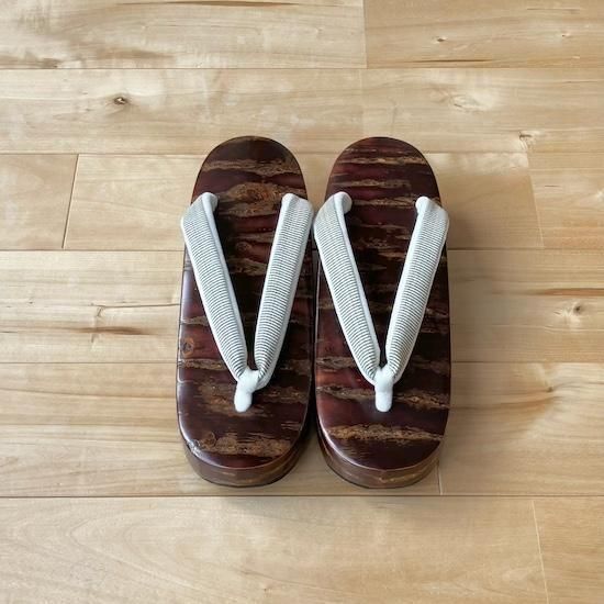 鼻緒はしなやかで自然な光沢感もあるホースヘア(馬の尾毛)に、前ツボはあえてのアイボリー。