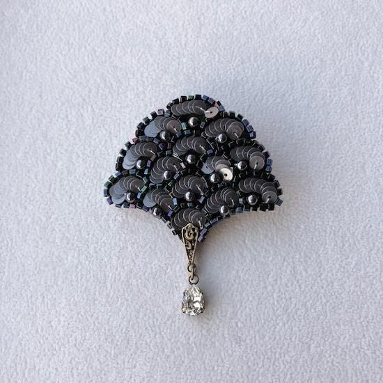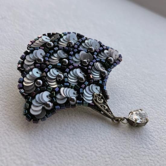 先の尖ったかぎ針を使って、布の裏面からビーズやスパンコールを留めつけていく刺繍技法。スパンコールをびっしりと重ねることが可能なため、光沢を最大限に引き出すことができます。